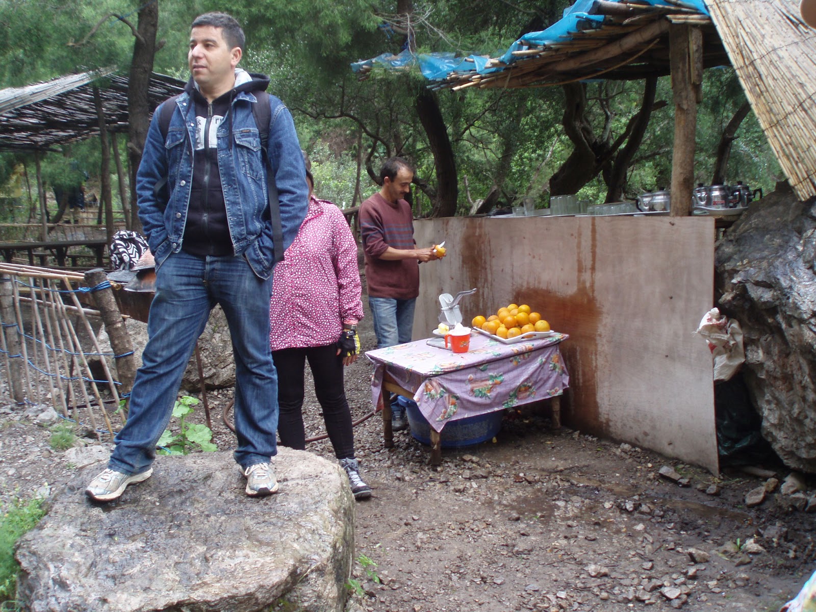 Aqui la jefa con baston en mano nos esta poniendo firmes porque aun quedaba mucho camino y nos estabamos entreteniendo, creo que es porque nos habian dicho que en Marruecos nunca hay prisas y se nos estaba pegando.Marruecos es un país de contrastes y donde menos te lo esperas hay alguien buscandose la vida, este hombre hacia zumos de naranja en mitad del camino que por cierto estaban buenisimos.